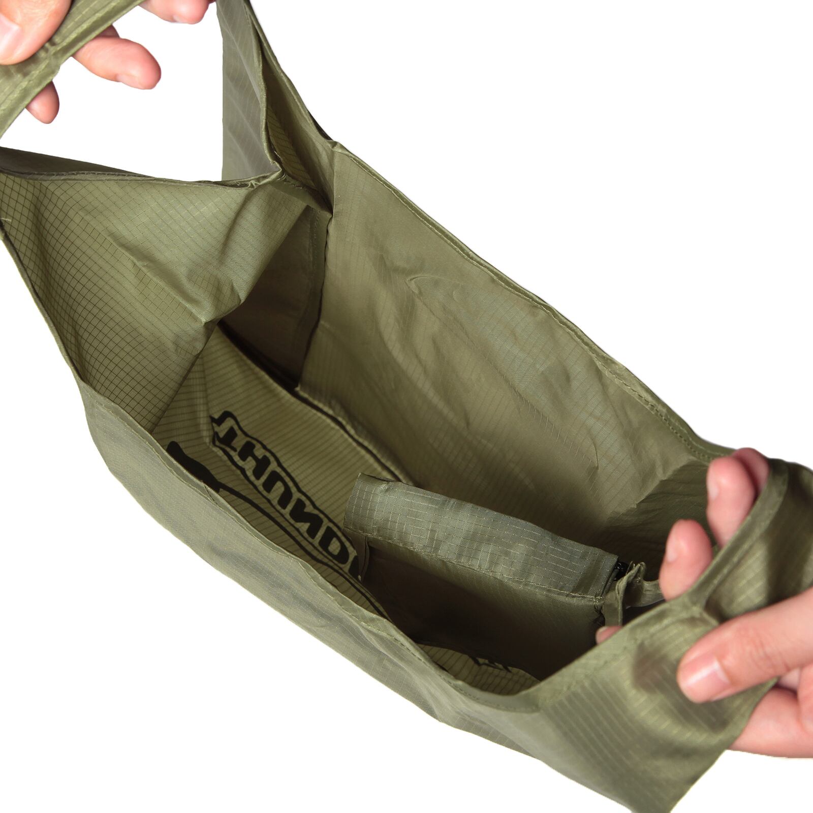 内側に収納ポケットがあり、コンパクトに折りたたみできます。