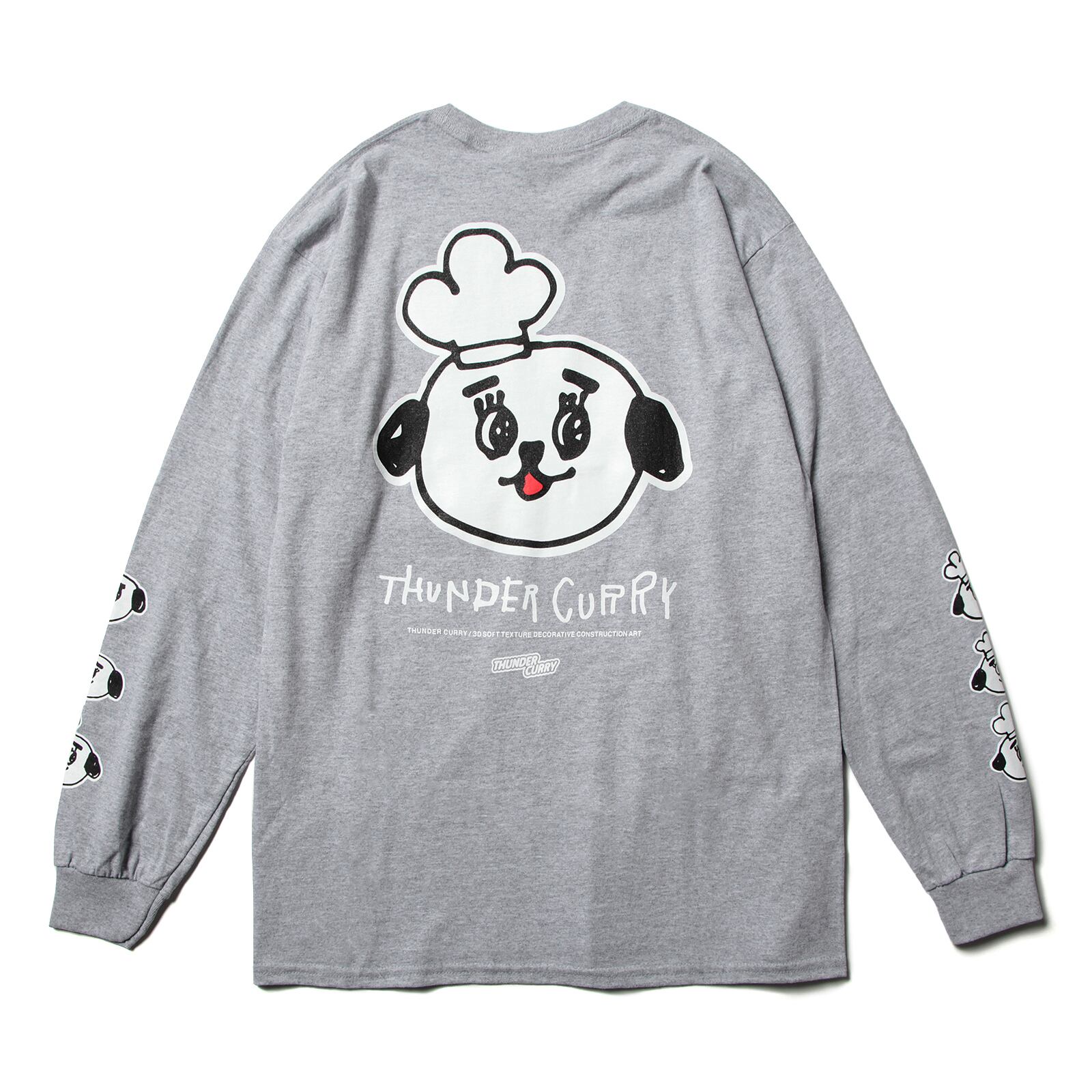 袖と背中に手描きのサンダー君プリントがのったロンT。